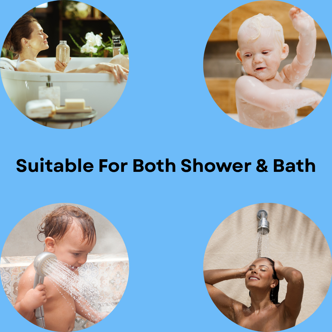 The 20 stage bath filter helps eliminate irritated, uncomfortable skin by removing the harsh elements that can be found in regular tap water. Each stage targets a different irritant: chlorine, heavy metals, rust, sediment, and even chemical residues, leaving the water softer, cleaner, and far gentler on delicate skin. With these irritants filtered out, your child’s skin can stay calm, hydrated, and irritation-free after every bath.