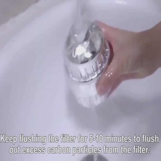 Run the water for 5–10 minutes to clear any loose carbon or filter particles.